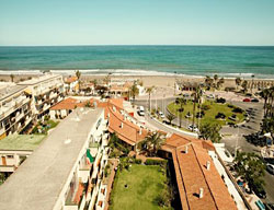 El hotel los jazmines se encuentra en una calle perpendicular al paseo marítimo de torremolinos, a apenas un par de minutos a pie de la playa (unos 20 metros aproximadamente).